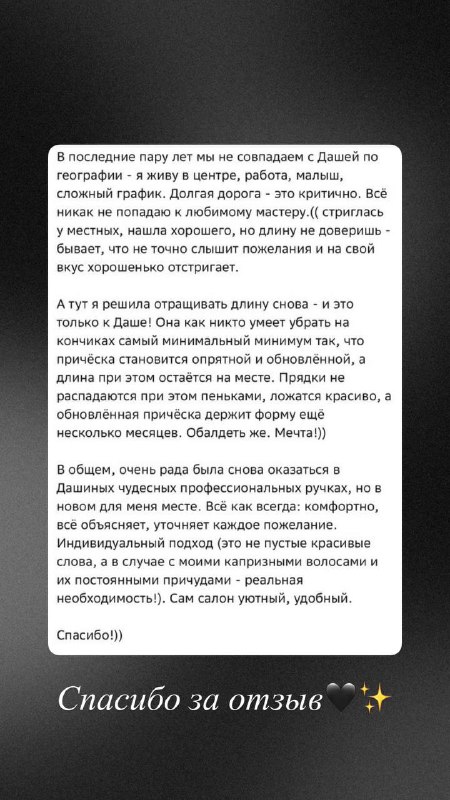 Подробный отзыв о работе мастера Дарьи💆🏼♀️✨ Спасибо за доверие🙏🤍 2
